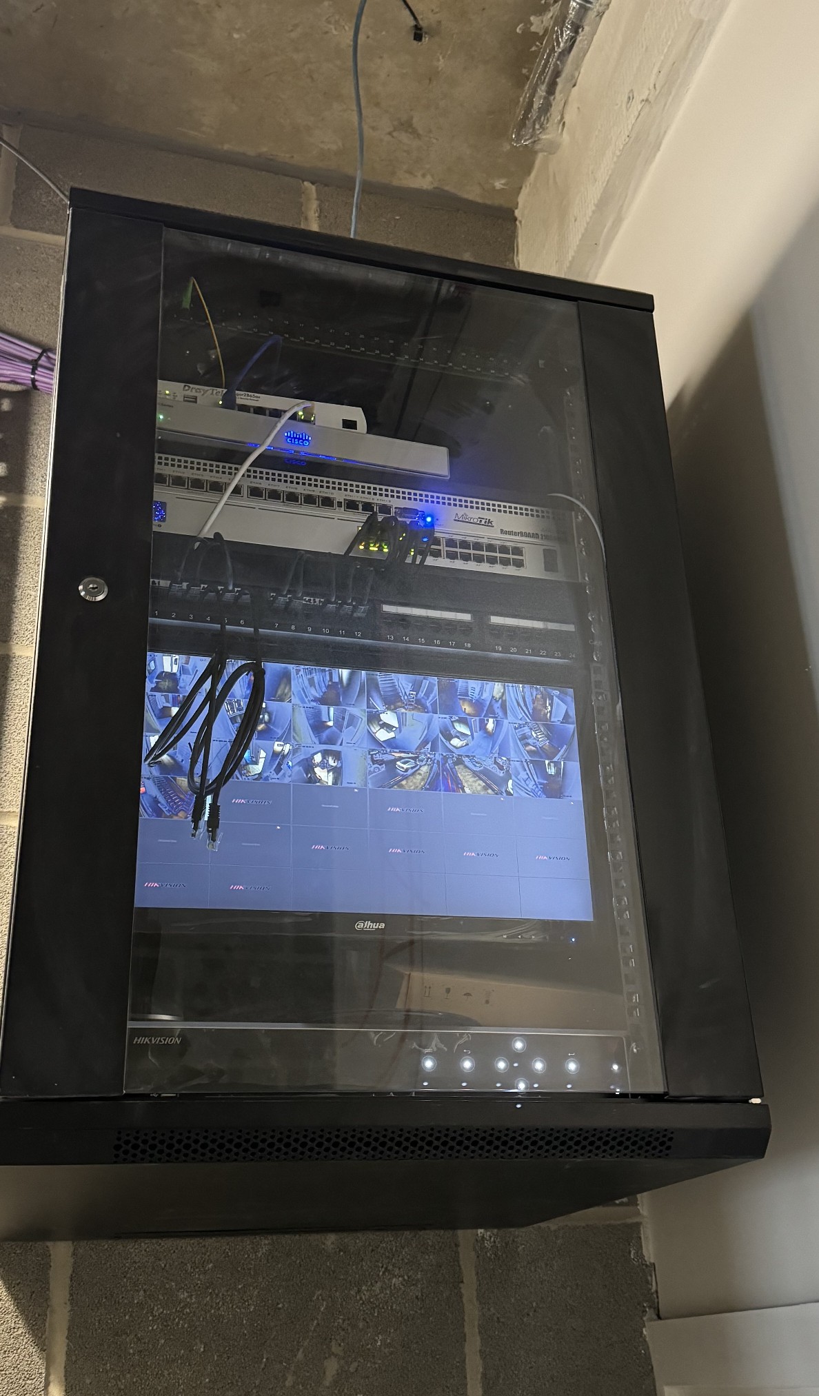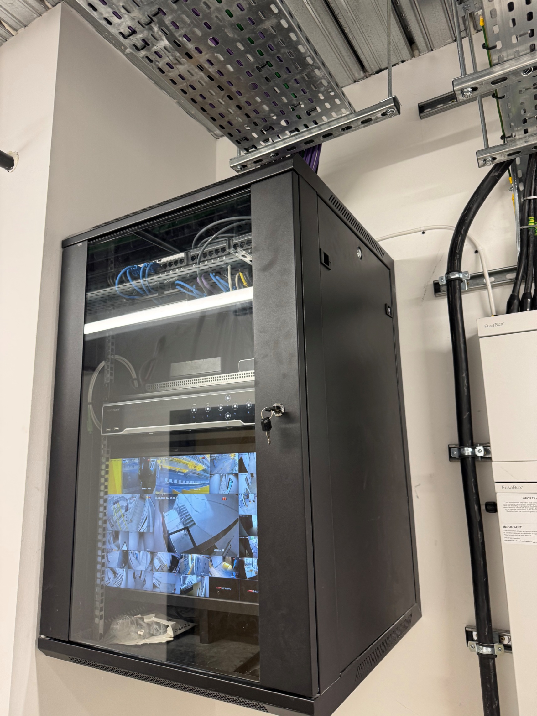 We specialise in the design and build of structured data cabinets, supplying and installing professional-grade equipment including Ubiquiti modems, routers, PoE switches, UPS battery backup systems, and associated networking hardware. Cabinets are installed neatly and logically, ensuring reliability, ease of maintenance, and future scalability.